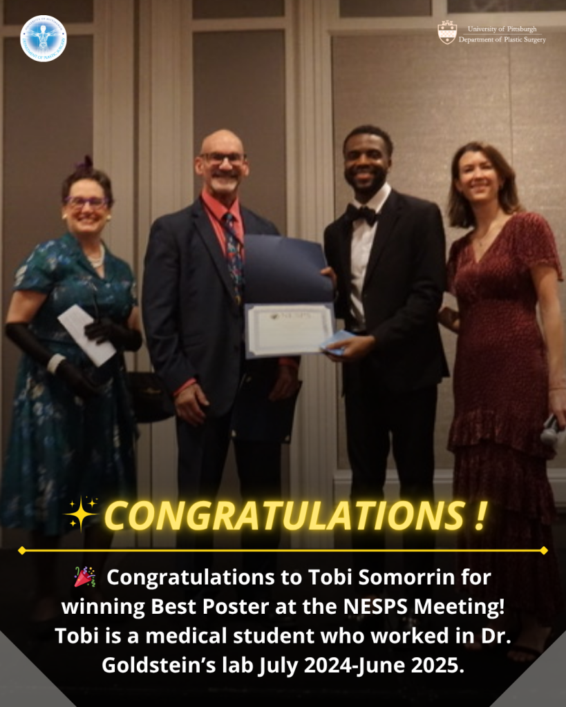 Tobi Somorin, medical student who worked in Dr. Goldstein's lab, won Best Poster at the NESPS Meeting.